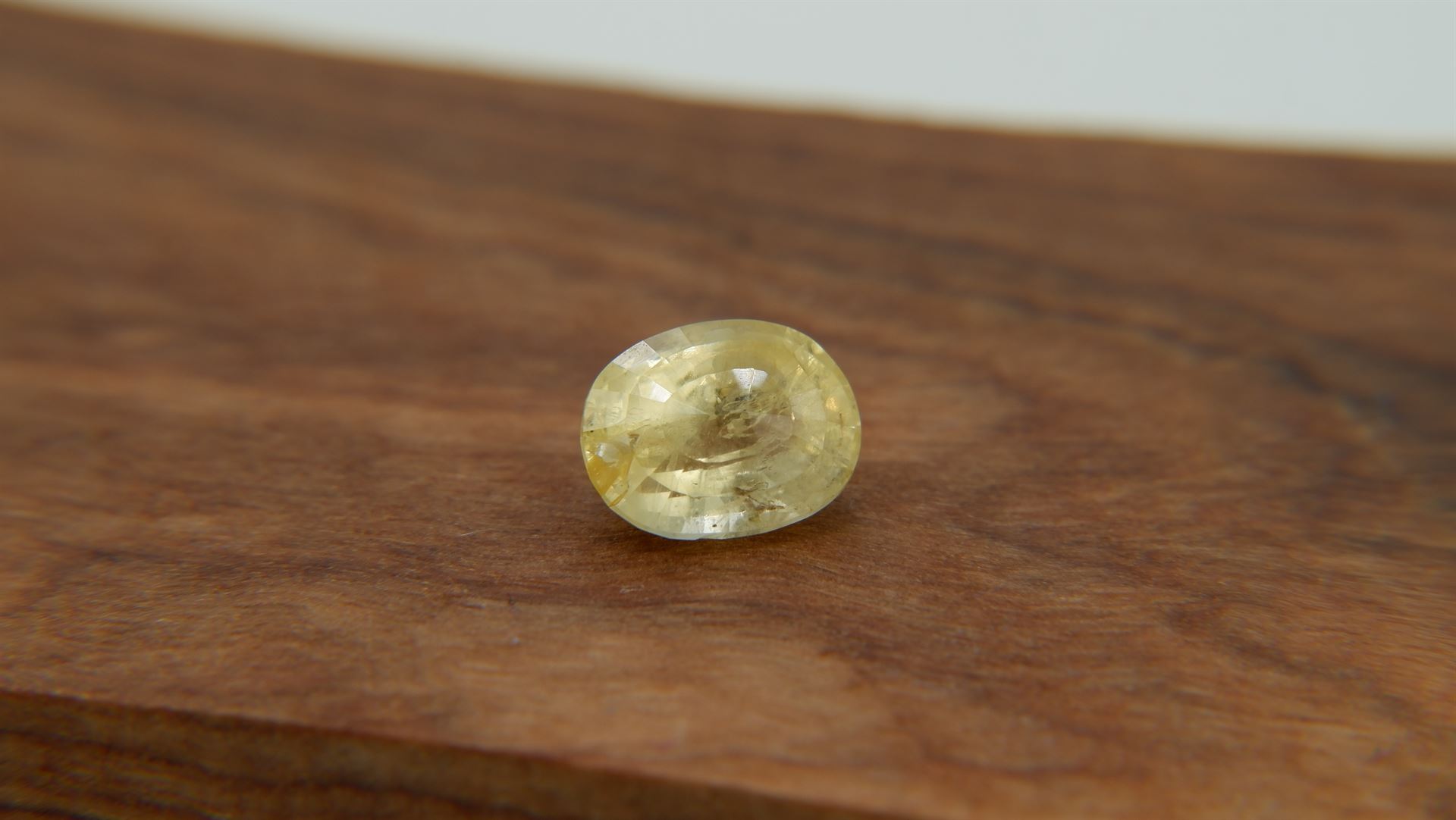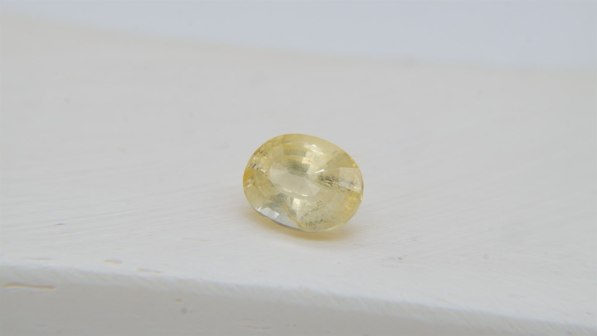| GEMSTONE APPRAISAL / EVALUATION: | This vivid fragrant citron yellow sapphire, weighing 1.96 carats and possessing an eye-clean clarity with no treatments, is appraised at an estimated fair market value of approximately USD 1,200. The premium handcrafted oval cut enhances its lustrous finish, while its moderately strong saturation and medium light tone contribute to its overall appeal. The stone's certification from an in-house gem laboratory further assures its quality and authenticity. Considering its carat size, vibrant color, and excellent cut, this Sri Lankan Ceylon sapphire can be viewed as a potential investment, particularly for collectors who appreciate unique colored gemstones. However, it may also serve as a beautiful statement piece in jewelry, such as a pendant or ring, allowing the owner to enjoy its beauty while retaining its value for future appreciation. |