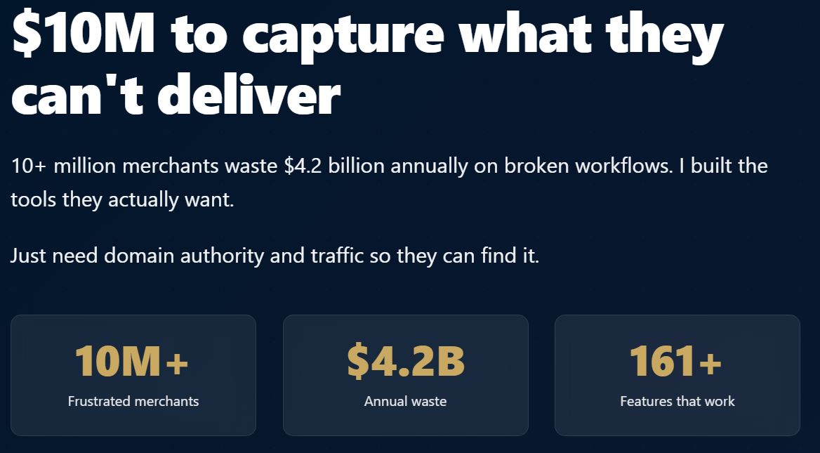 The opportunity is simpler: Millions of merchants are already frustrated with what they have. They search for solutions every single day.